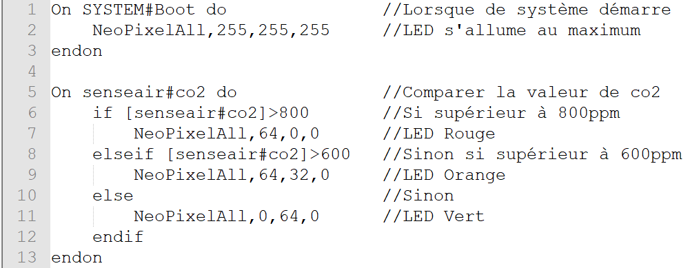 Nous devons désormais réaliser un scénario pour l’allumage de la LED en fonction de la concentration de CO2 mesuré.